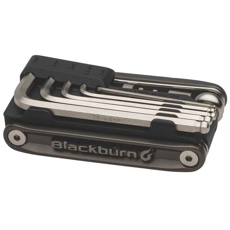 Le Multi-Tool Blackburn Wayside offre une excellente sélection d’outils pour effectuer une multitude de réparations et de travaux d’entretien sur la route ou sur le sentier. Multi-outil compact avec 19 fonctions : Six pans creux amovibles avec tête sphérique (2/2.5/3/4/5), six pans creux (6/8), Torx (T25/T30), clé à valve, tournevis plat, rivet de chaîne 7-12SPD, clé à rayons 0/1/2, crochet de fixation de chaîne, scie, écarteur de plaquettes de frein avec housse néoprène.