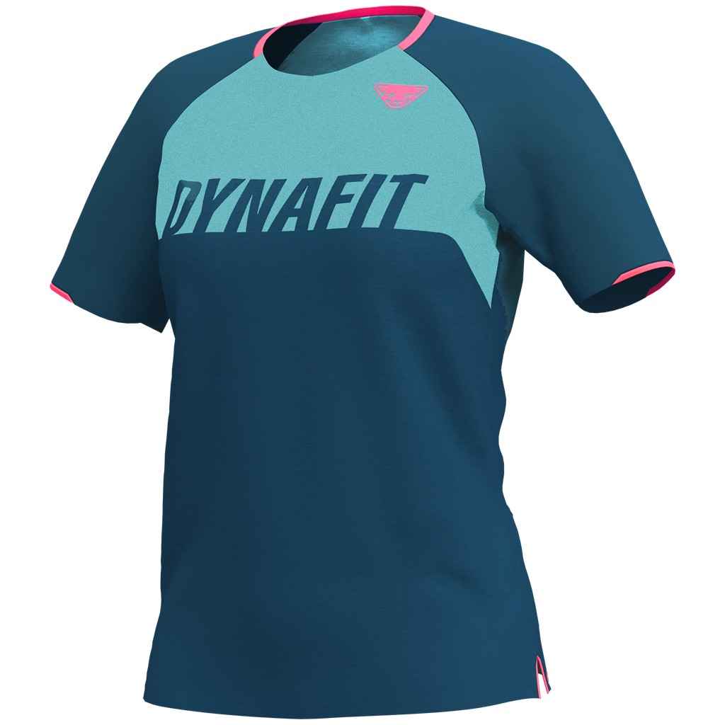 T-shirt de VTT sportif avec logo imprimé sur la poitrine. Le tissu chiné est respirant, sèche rapidement et est agréable sur la peau. Des réflecteurs sur les bordures de manches fournissent la visibilité nécessaire dans le brouillard ou la pénombre en montagne.