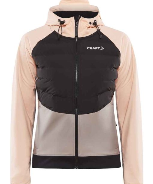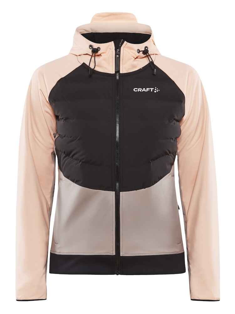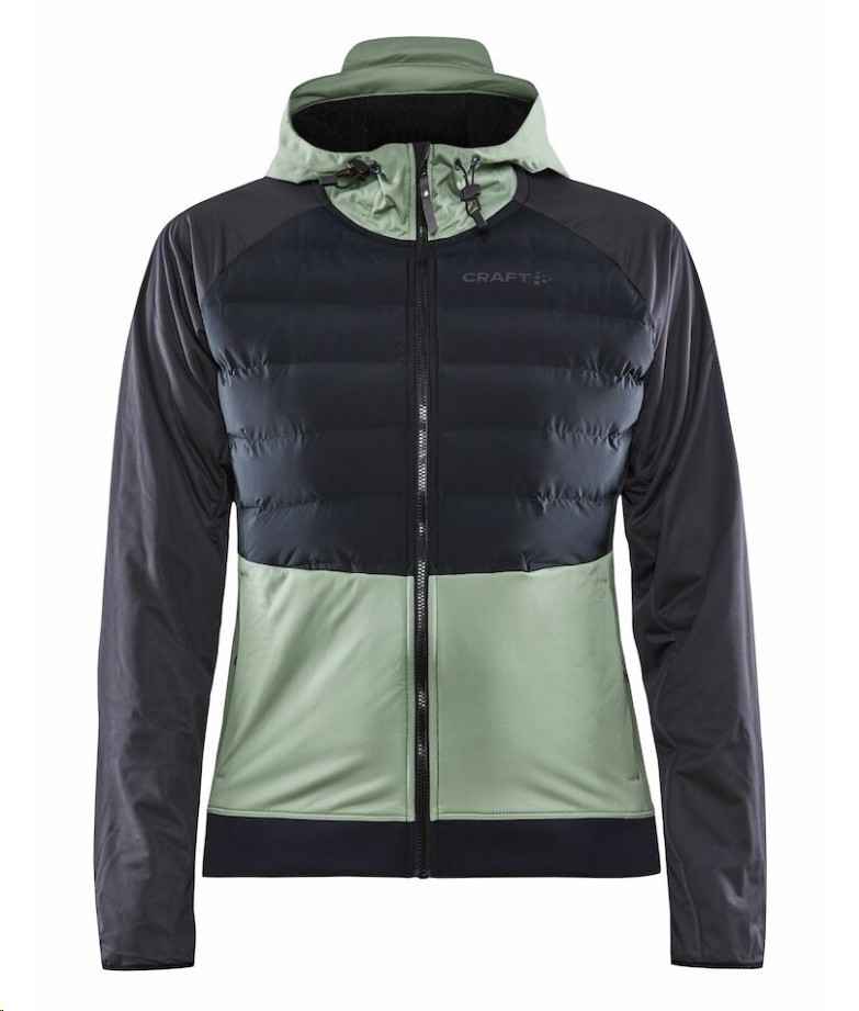 Veste de ski avec matelassage sur le devant et capuche, manches raglan et côtes élastiques sur le bas.
